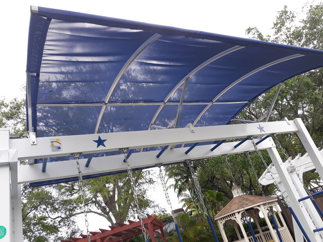 The solar tested fabric of Kool Kid shaded outdoor playsets is great for the sunny climate. It allows ventilation and our ray-filtration system allows your child to stay cool when playing in the shade of the Kool Kid Shady canopy.